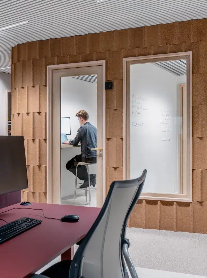 Made from 100% natural cork, it offers excellent acoustic absorption while adding depth and visual sophistication to any interior.