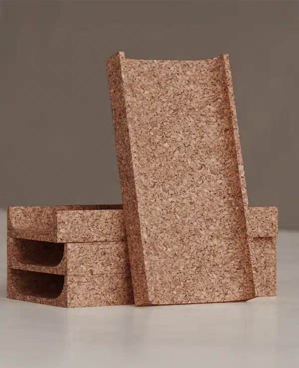 Parenthese is a bold cork tile inspired by the geometric elegance of 1950s and 60s wood paneling. Its structured design invites playful compositions with rhythm, perspective and contrast. Tiles can be rotated to form graphic patterns that evolve with your point of view, transforming flat surfaces into living, tactile walls.