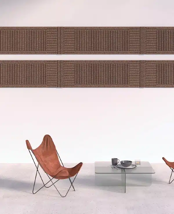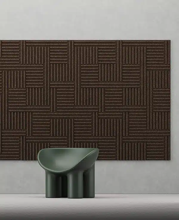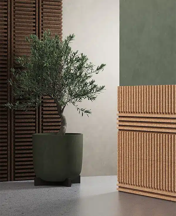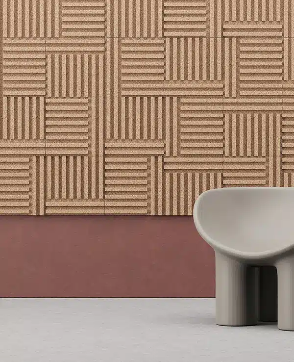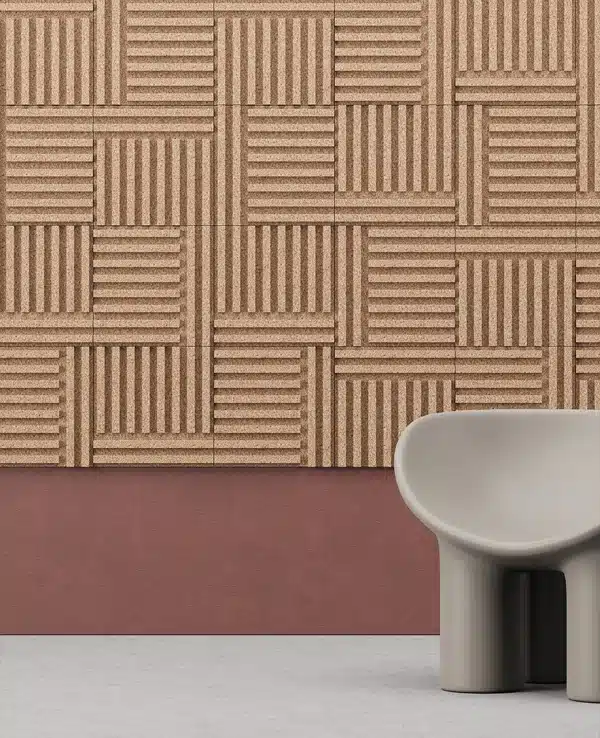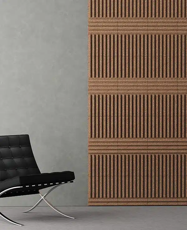 Beyond its visual depth, Sillon offers excellent sound absorption thanks to its density and micro-texture. Ethically harvested and 100% natural, cork helps reduce reverberation while adding warmth and biophilic character to interiors.