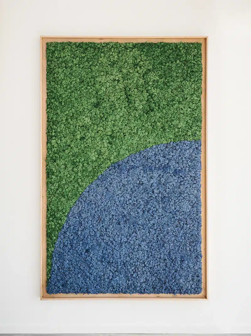 Framed is a collection of artistic wall panels composed of preserved moss and foliage, set within solid oak frames. Each piece offers a natural focal point that blends tactile greenery with timeless design, ideal for both residential and commercial settings.