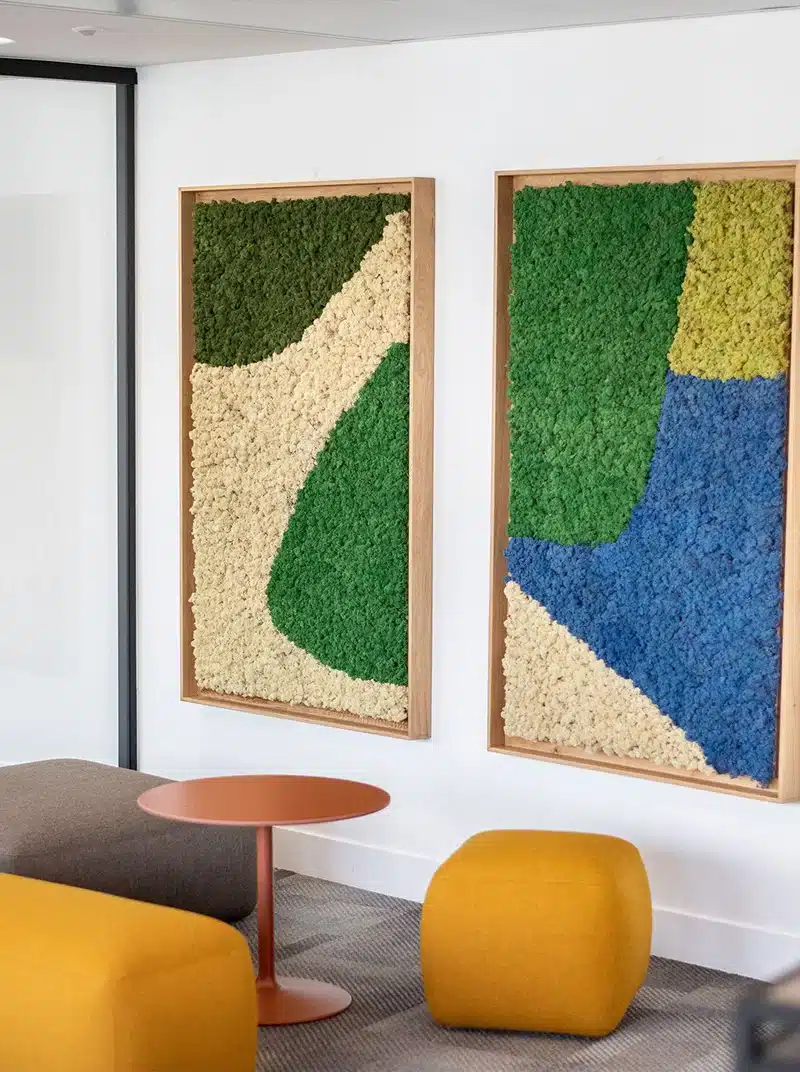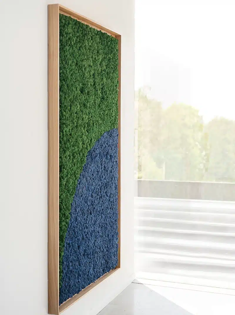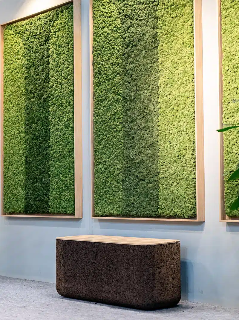 Like all Greenmood designs, Framed contributes to acoustic well-being. The preserved moss naturally absorbs sound waves, helping to reduce reverberation and soften ambient noise in busy environments.