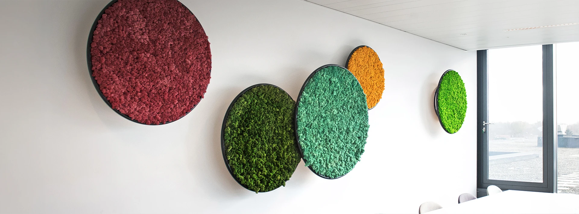 The G-Circle is a circular 3D panel filled with fully preserved natural moss, lichen or wild, plants.