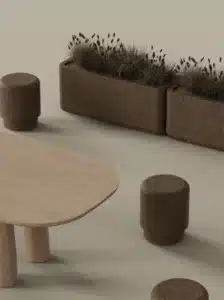 Soft to the touch and visually warm, each piece offers a simple, elegant seating option that supports both relaxation and ecological responsibility.