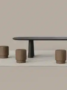 Minimalist in shape but rich in material, the Terra and Mario poufs offer flexible seating, a footrest or even a stylish side table. Their sculptural silhouettes blend into any environment.
