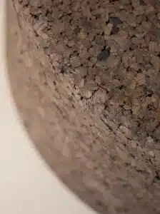 Expanded cork, also called smoked cork, is a natural material made from the bark of cork oak trees that cannot be used for traditional cork stoppers. Instead of being discarded, this bark is turned into granules and steam-heated, which causes them to expand and naturally bind together—no chemicals required