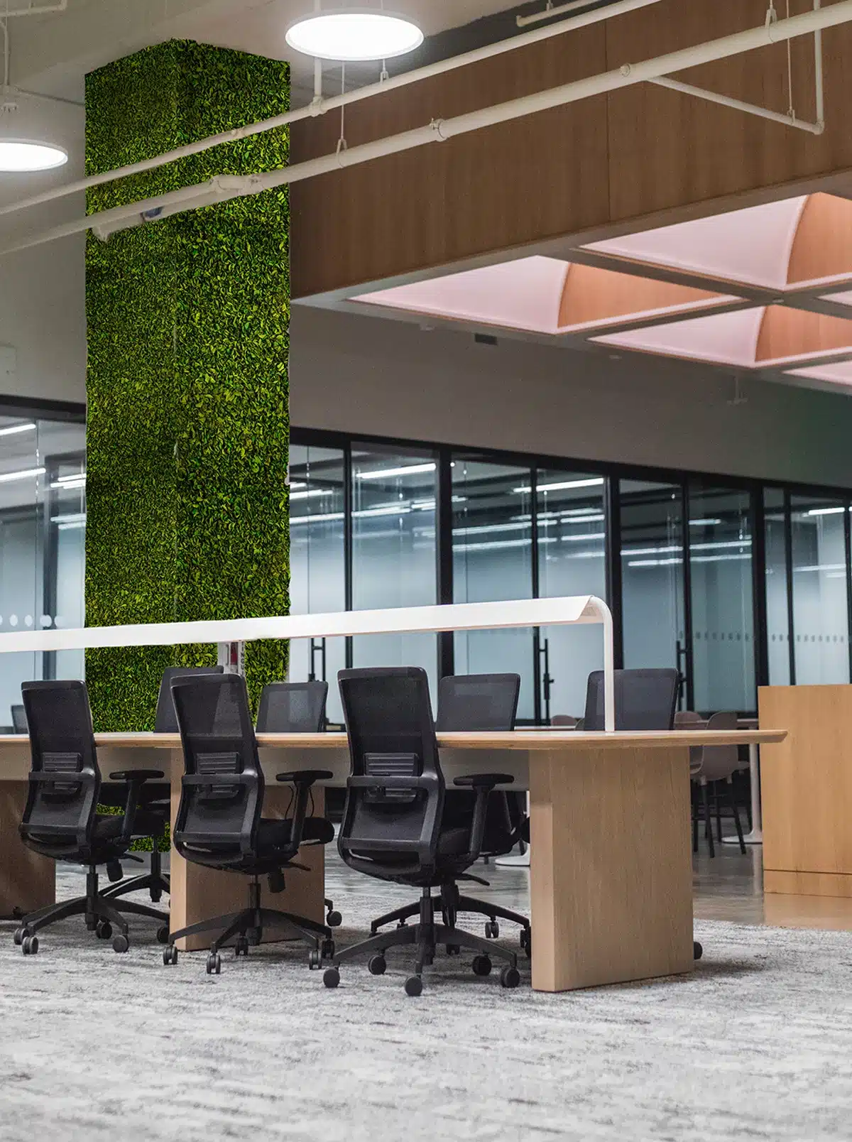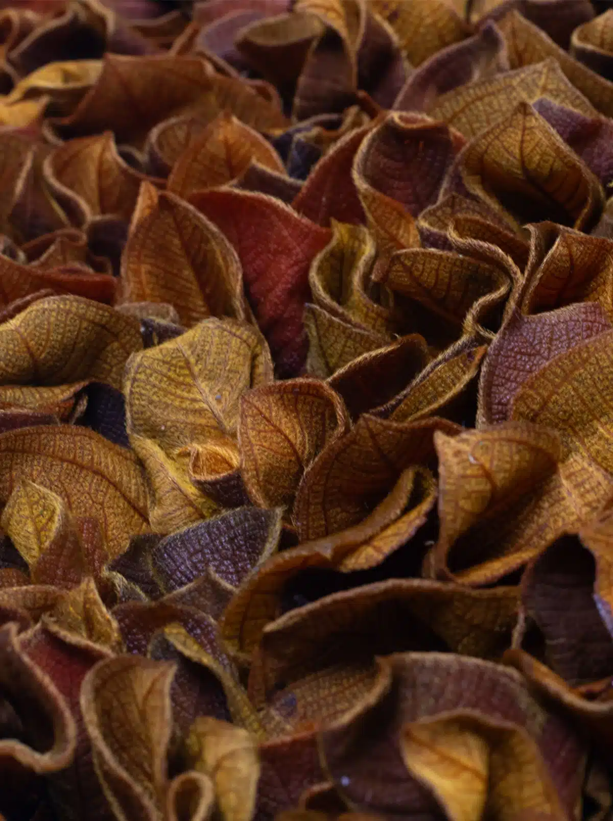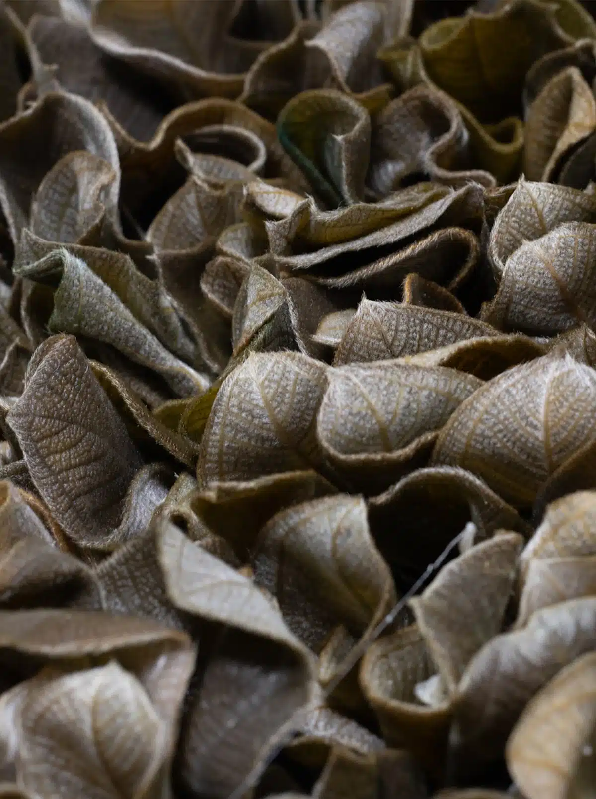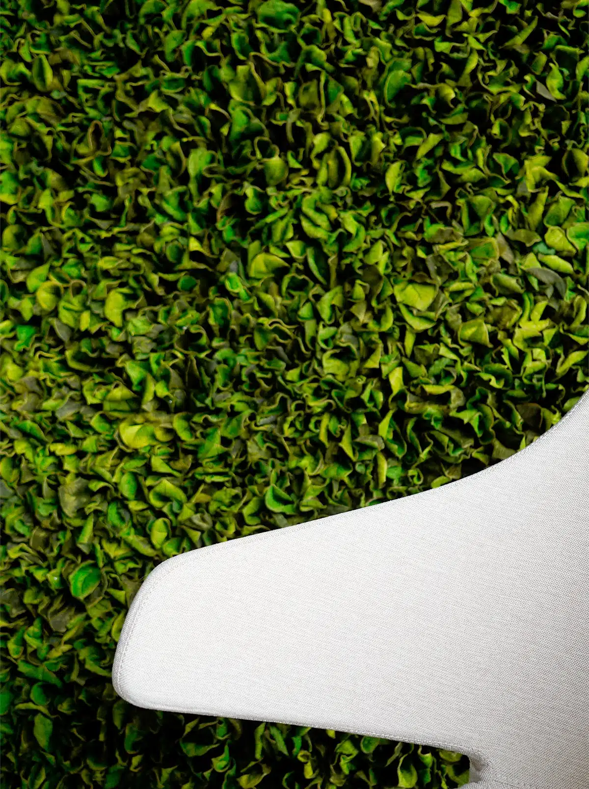 Each Velvet Leaf wall is a handmade composition, rich in texture and character. The foliage forms a layered, organic surface that reduces ambient noise while creating a calming atmosphere.