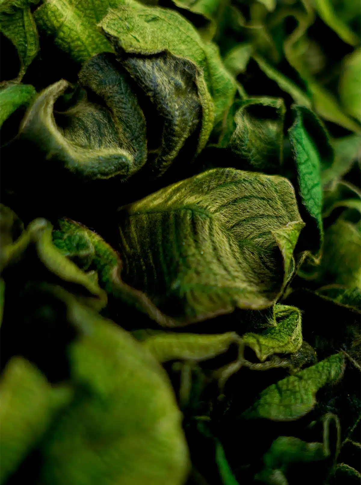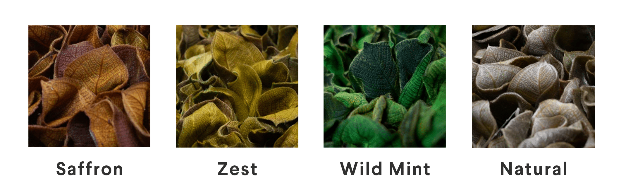 Velvet Leaf is a refined biophilic wall made from hand-preserved Tibouchina leaves. Native to South America, these velvety-textured leaves captivate both the eye and the touch — shifting color from light lemon green to deep emerald depending on the light and angle.