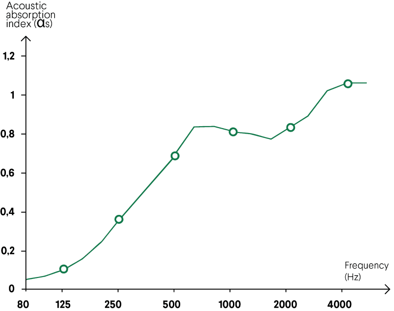 Class C – NRC 0.65 (ISO 11654:1997), tested by a certified lab in the Netherlands